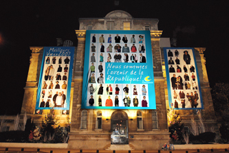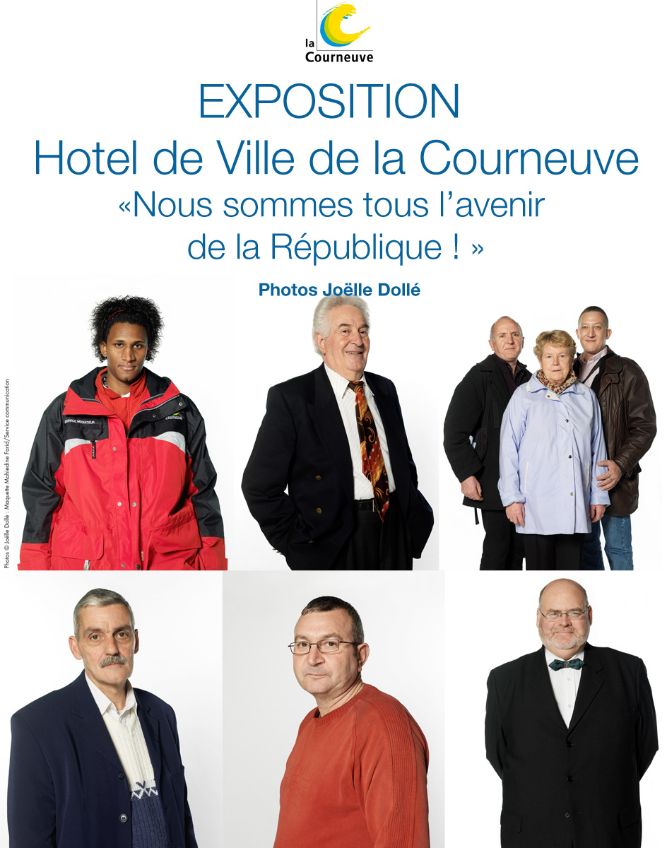 Lors des Rencontres de La Courneuve, à la demande de la municipalité j'ai installé mon studio et réalisé des portraits d'habitants de tous âges. L’exposition imprimée sur de grandes bâches a recouvert la façade de la mairie.
