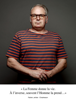 L'exposition réalisée avec l'association UniesVers'Elles présente soixante-huit portraits d'hommes qui témoignent contre les violences faites aux femmes et sont pour l'égalité des femmes et des hommes. En donnant la parole aux hommes l'objectif est de sortir des cloisonnements et d'ouvrir le débat sur tous les sujets femme-homme et sur les fondements de toutes les violences.